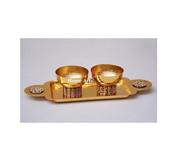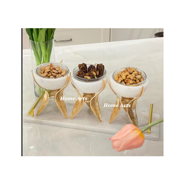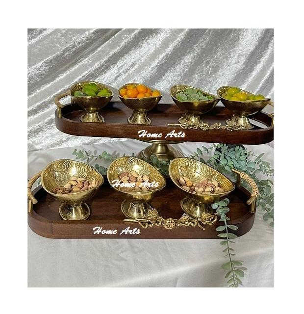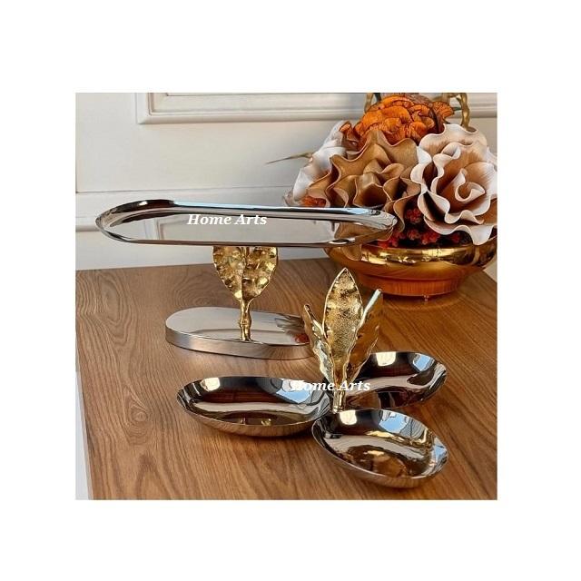 Bol à fruits secs décoratif en aluminium couleur or fait à la main avec plateau à feuilles décor à la maison serveur de noix en Inde