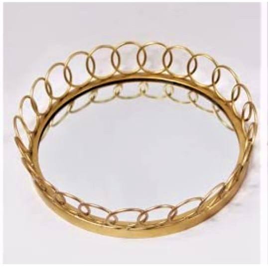 Plateau de service en métal en verre miroir doré fait à la main avec poignées pour la décoration de la maison et de l'hôtel plateau de miroir rond en métal de styliste