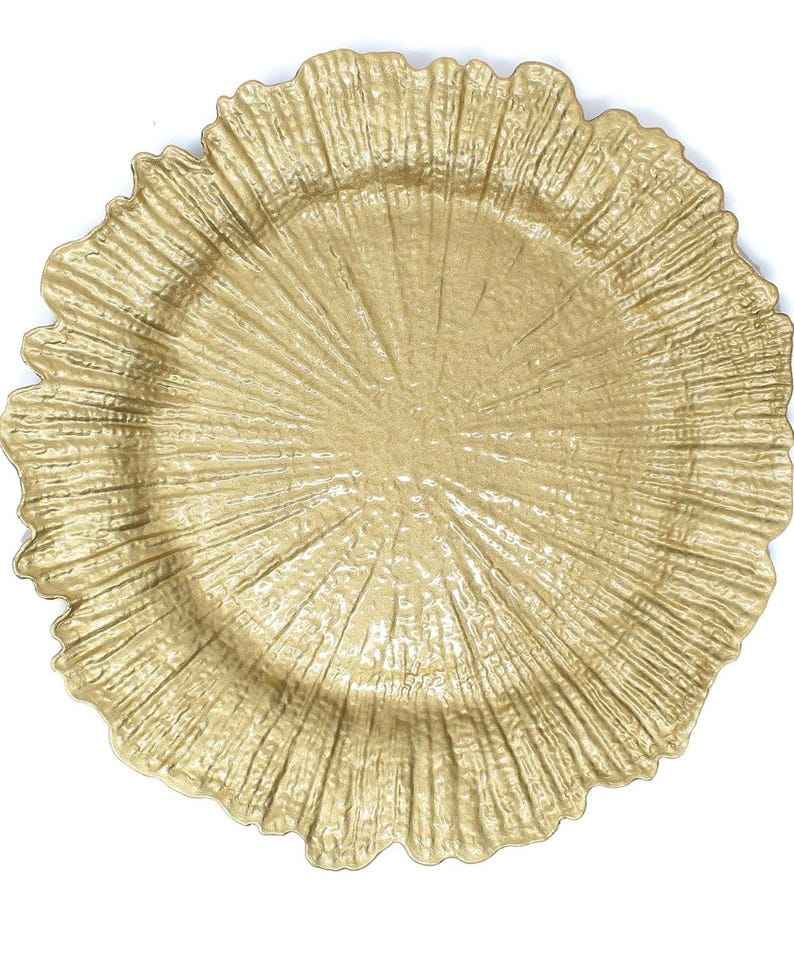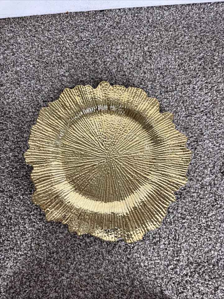 Assiette de service en métal de texture en aluminium plaqué or fait à la main écologique pour la conception d'assiette de chargeur inspirée par l'Inde