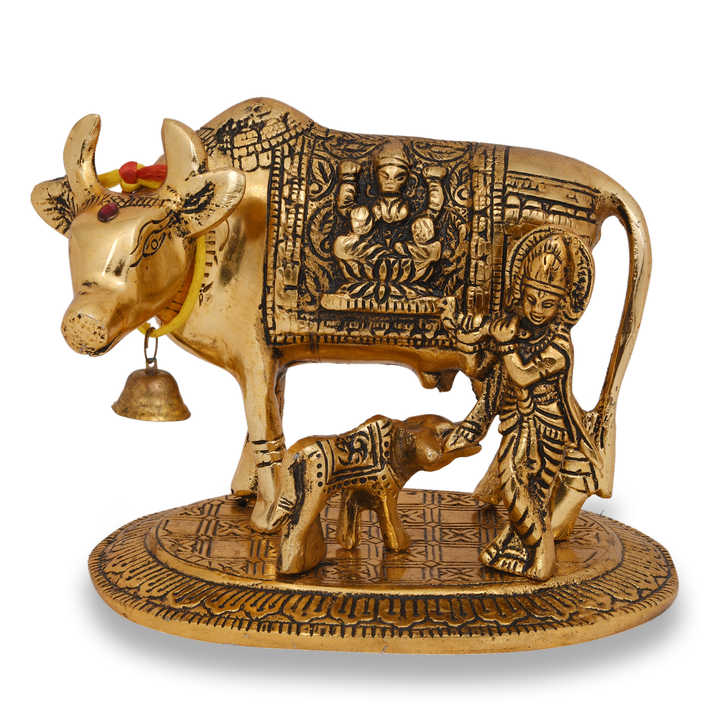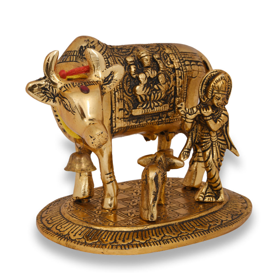 Vache et mollet en métal en laiton plaqué or fait à la main avec le petit Krishna cadeau de retour et cadeau de décoration pour la décoration et le cadeau
