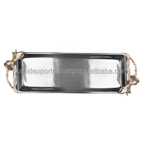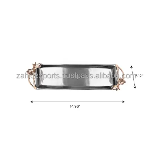 Plateau de service alimentaire en métal plaqué or fait main, design rectangulaire moderne, décoration de Noël, plateau de présentation multifonctionnel, logo personnalisé