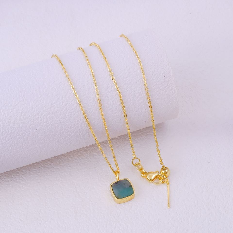 Collier pendentif carré émeraude naturelle plaqué or fait à la main bijoux en pierres précieuses vertes à la mode
