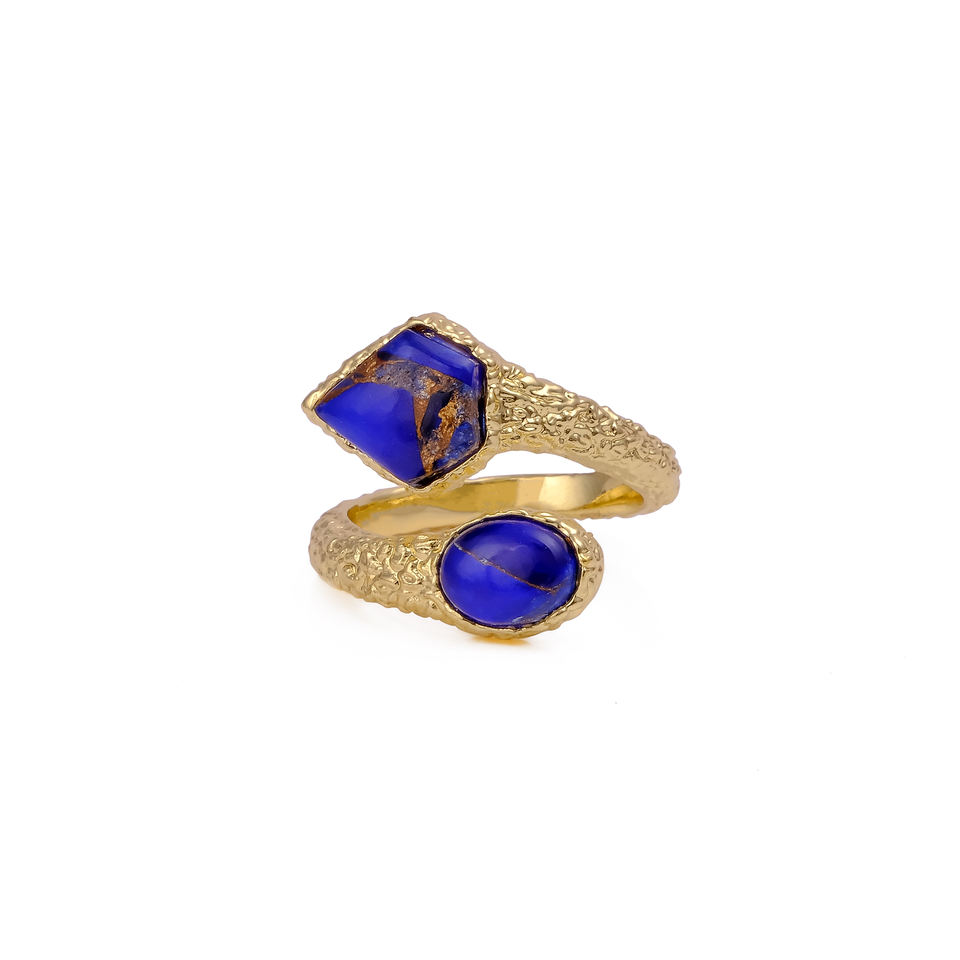 Handmade Gold-Plated Statement Adjustable Dual Stone Band with Sapphire Jade Copper Turquoise Gold Finish Ring for Weddings