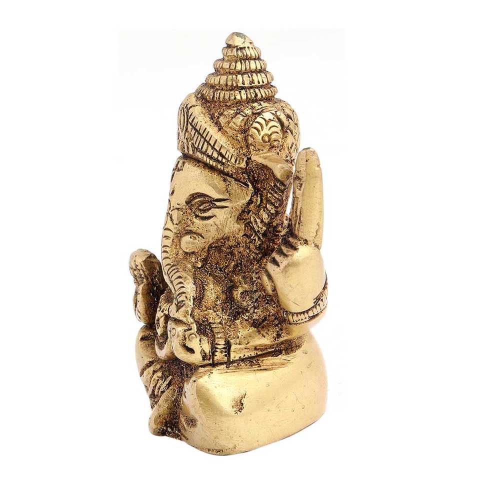 Nom du produit:Statue de Ganesha en laiton assis sur la pose de Chowki Chaturbhurj