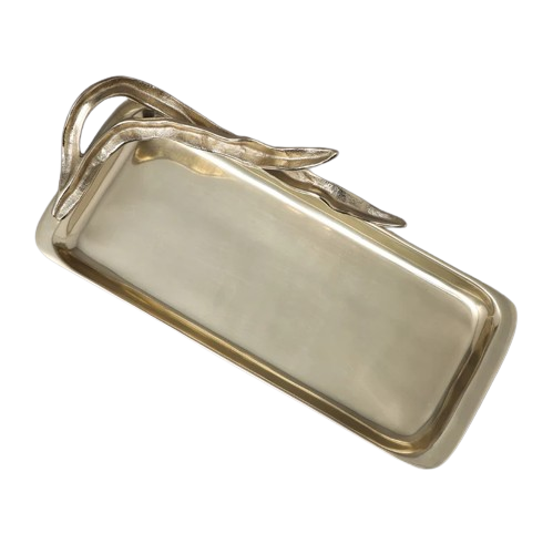 Plats de service et plateau de couleur dorée faits à la main avec poignée en métal en forme de plante Prix