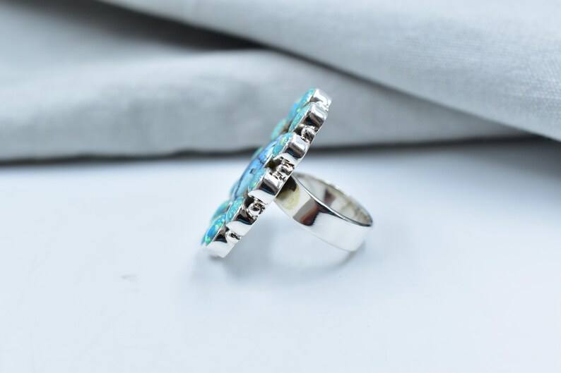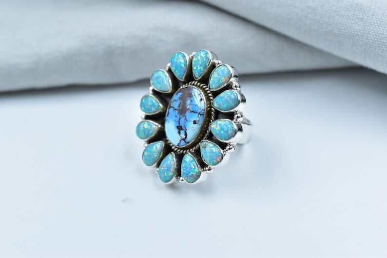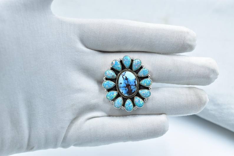 Handmade Golden Hill Turquoise Aurora Opal Sterling Silver Adjustable Ring for Women