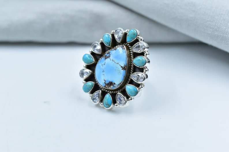 Bague réglable en argent sterling Golden Hill Turquoise Mojave Turquoise faite à la main