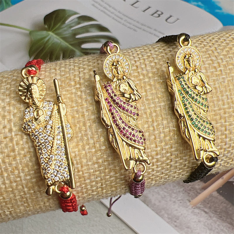 Bracelet tressé porte-bonheur Saint Jude fait à la main, plaqué or, zircone cubique, bracelets en corde de Saint Jude, vente en gros