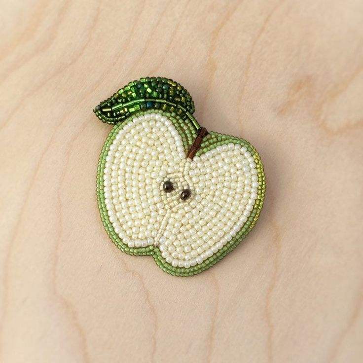 Ensemble de broches artisanales en forme de pomme verte, brodées à la main avec des perles de verre, épingles de revers sur le thème de la nature pour femmes, articles de boutique de mode