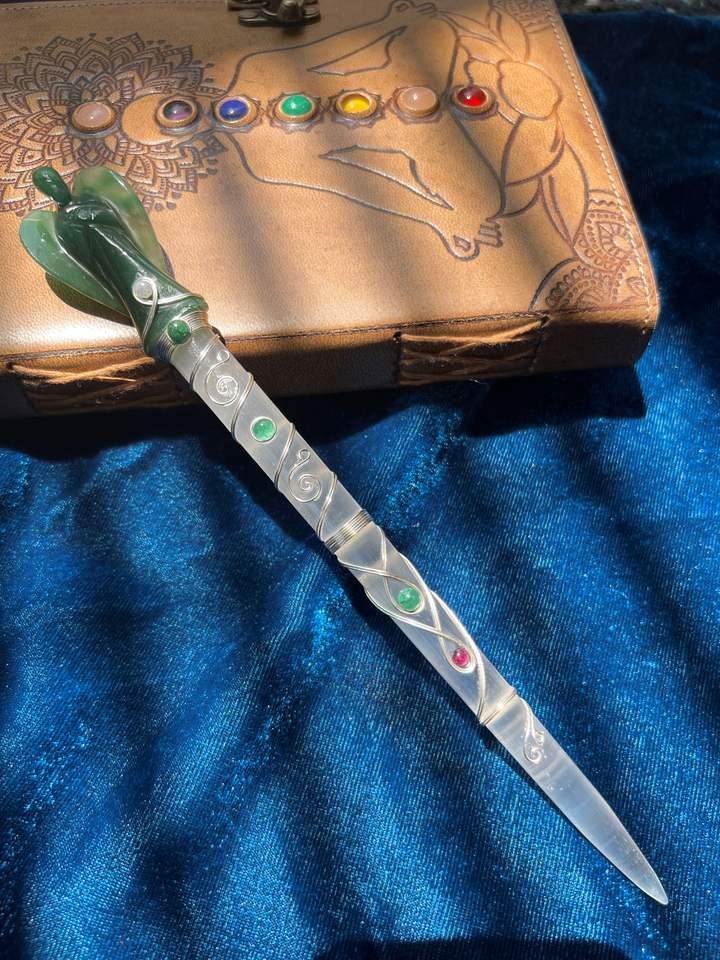 Product name:Green Aventurine Angel Figurine with Selenite Crystal Wand