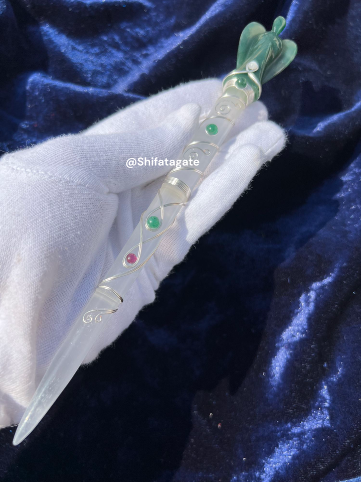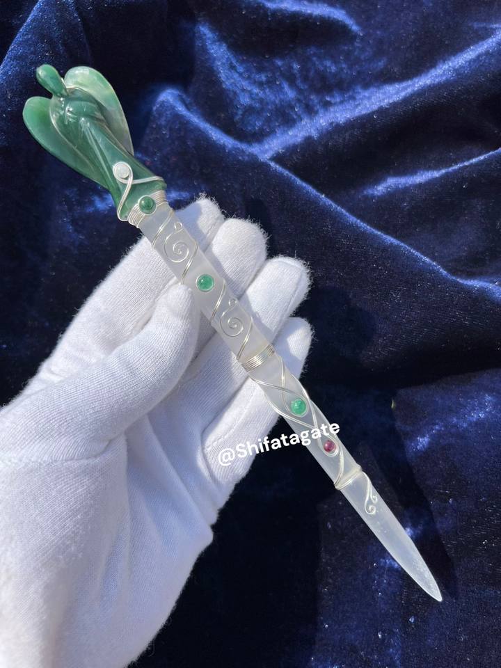 Product name:Green Aventurine Angel Figurine with Selenite Crystal Wand
