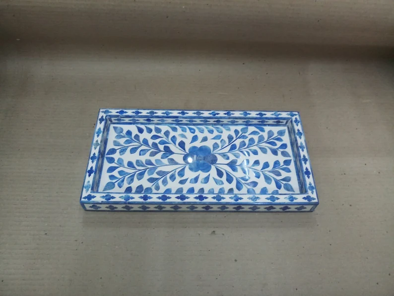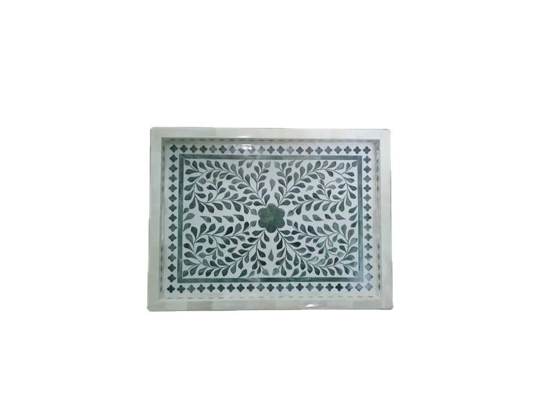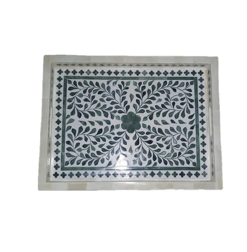 Plateau en os vert fait main avec incrustations : motif floral par PERFECT ENTERPRISES