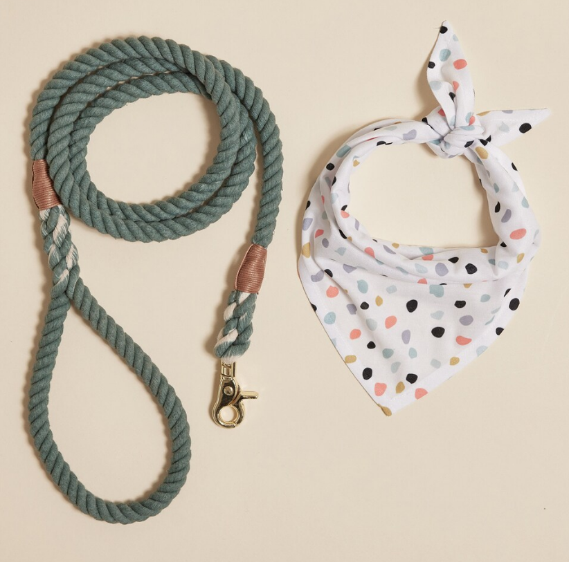 Laisse pour chien en corde de coton verte faite à la main, 1,5 m, tressée, teinte naturellement, avec bandana offert, laisse durable pour chien