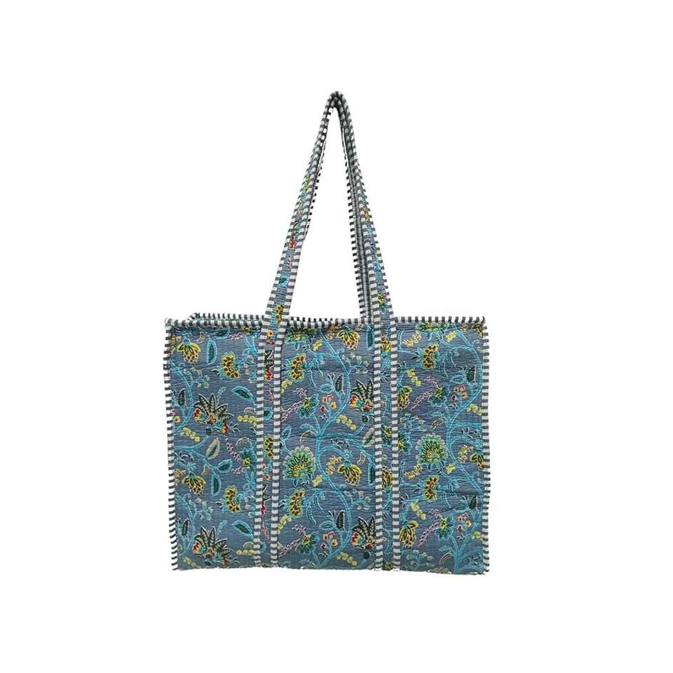 Sac fourre-tout en toile vintage fait à la main pour femmes, coton matelassé floral écologique, fermeture à glissière personnalisable, imprimé floral vert