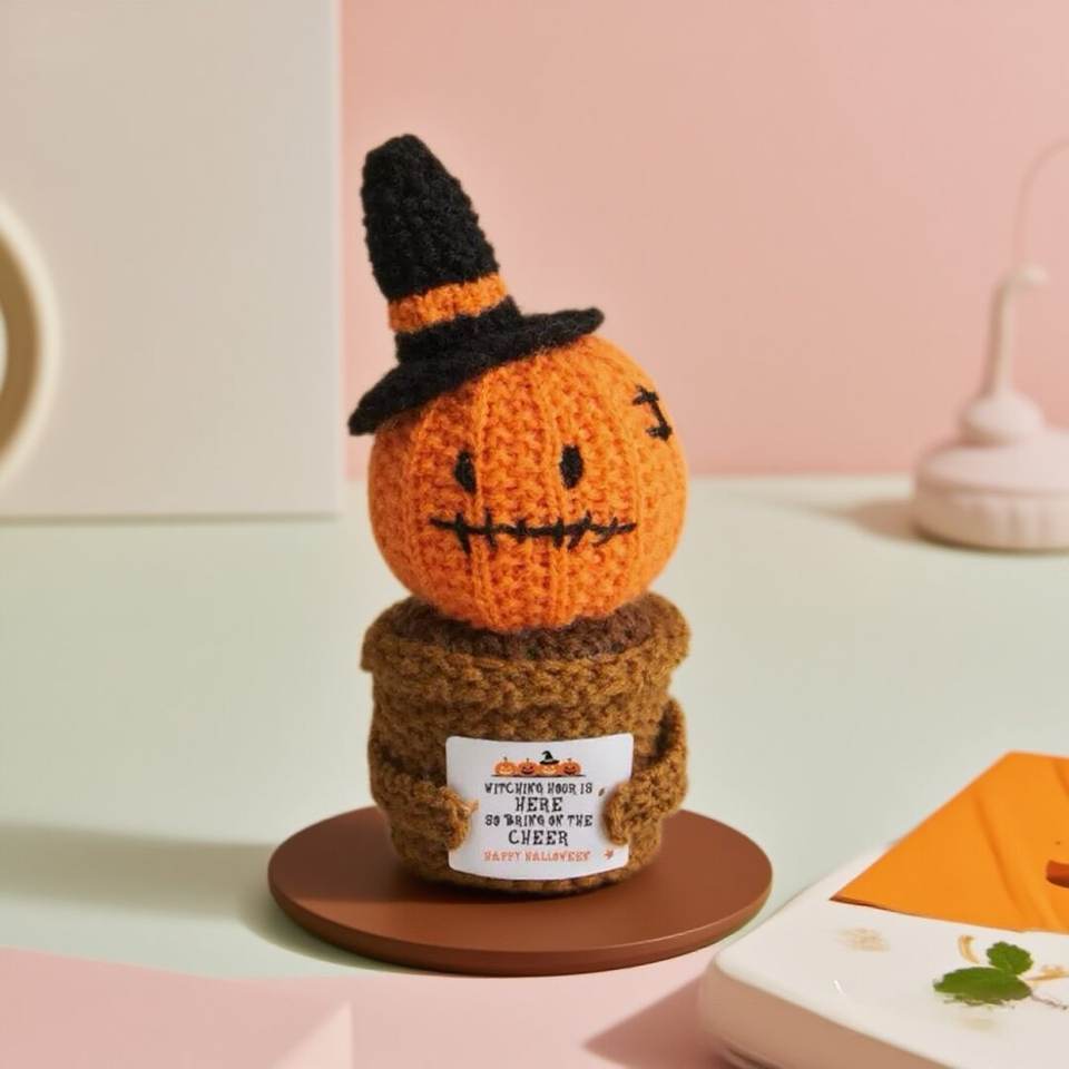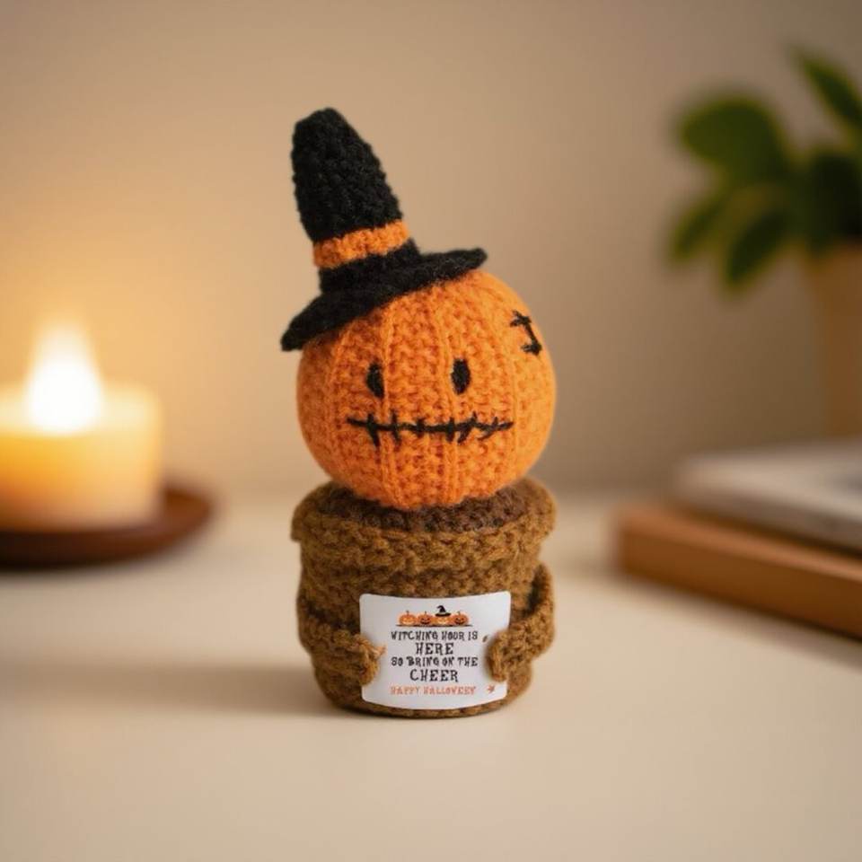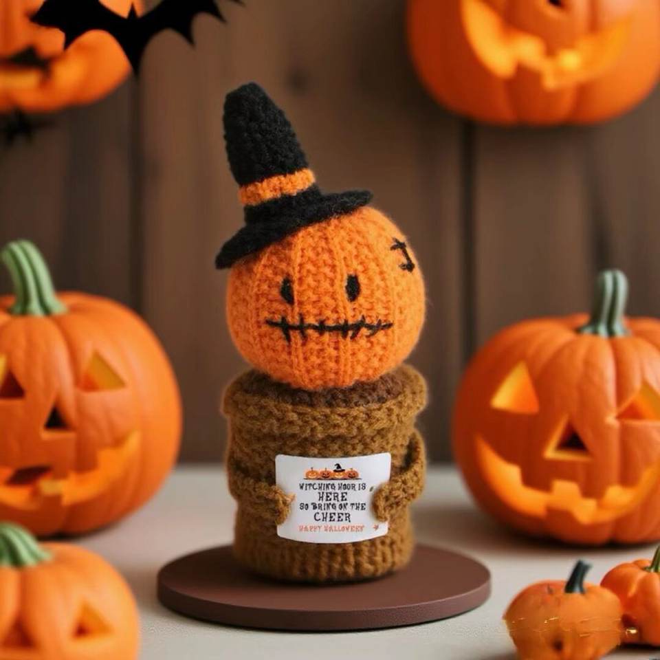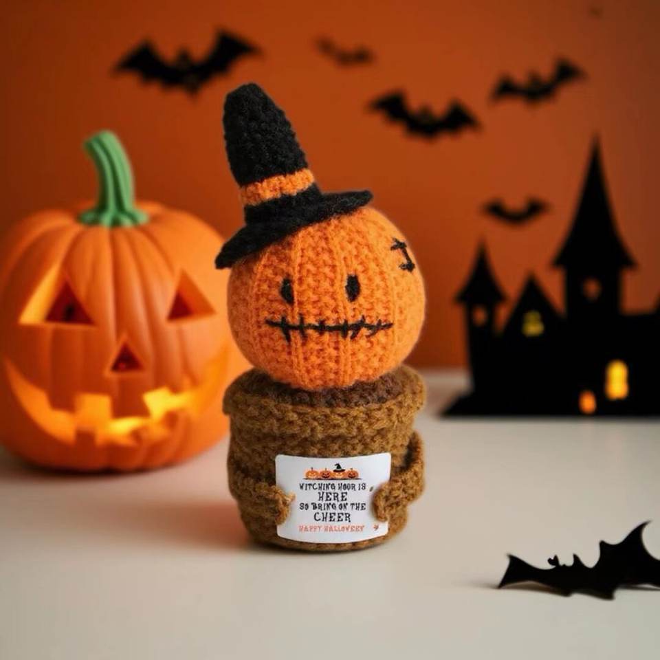 Décorations de bureau d'Halloween faites à la main Citrouilles Fantômes Poupées à énergie positive Crochet Cadeaux de fête Poupée en crochet orange