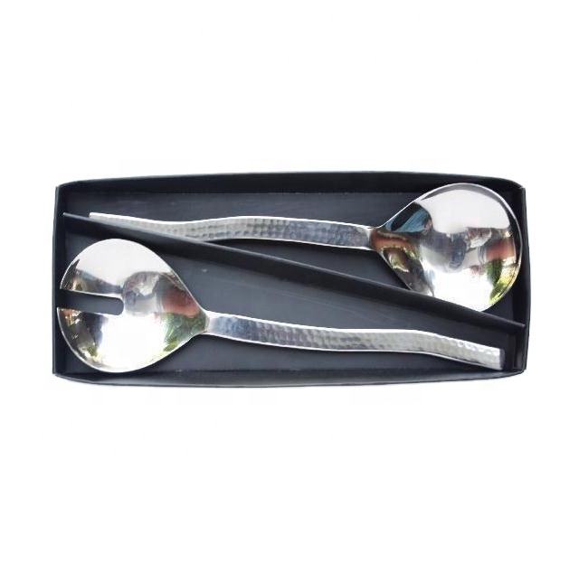 Ensemble de cuillère à riz à salade polie miroir martelé fait à la main vaisselle en métal pour la cuisine fabriquée en acier