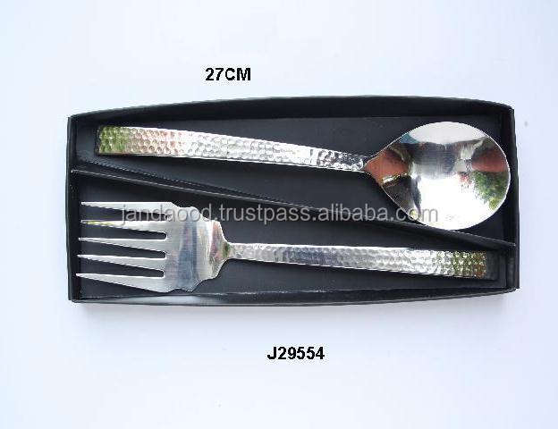 Ensemble de salade martelé et poli miroir fait à la main en acier fourchette à cinq dents vaisselle de table