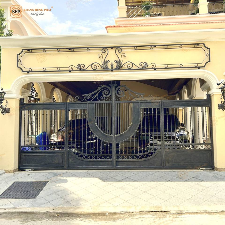 Portail double en fer forgé haut de gamme fait main et forgé à la main pour villa privée, design personnalisé 2D et 3D, fabricant vietnamien