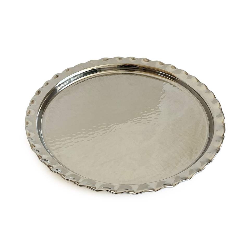 Plateau de présentation rond en cuivre martelé à la main, 34 cm - 13,3 pouces, plateau de service à café pour les cérémonies, nickel