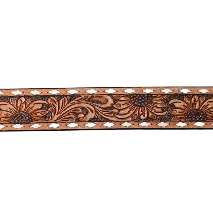 Ceinture Western en cuir pleine fleur faite à la main, motif tournesol, unisexe, boucle amovible, ceinture de cowboy