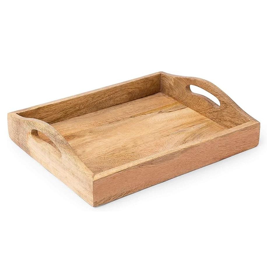 Plateau de service en bois rectangulaire fait à la main et fabriqué à la main Poignée de plateau imbriquée au design moderne pour la cuisine pour les mariages du Ramadan
