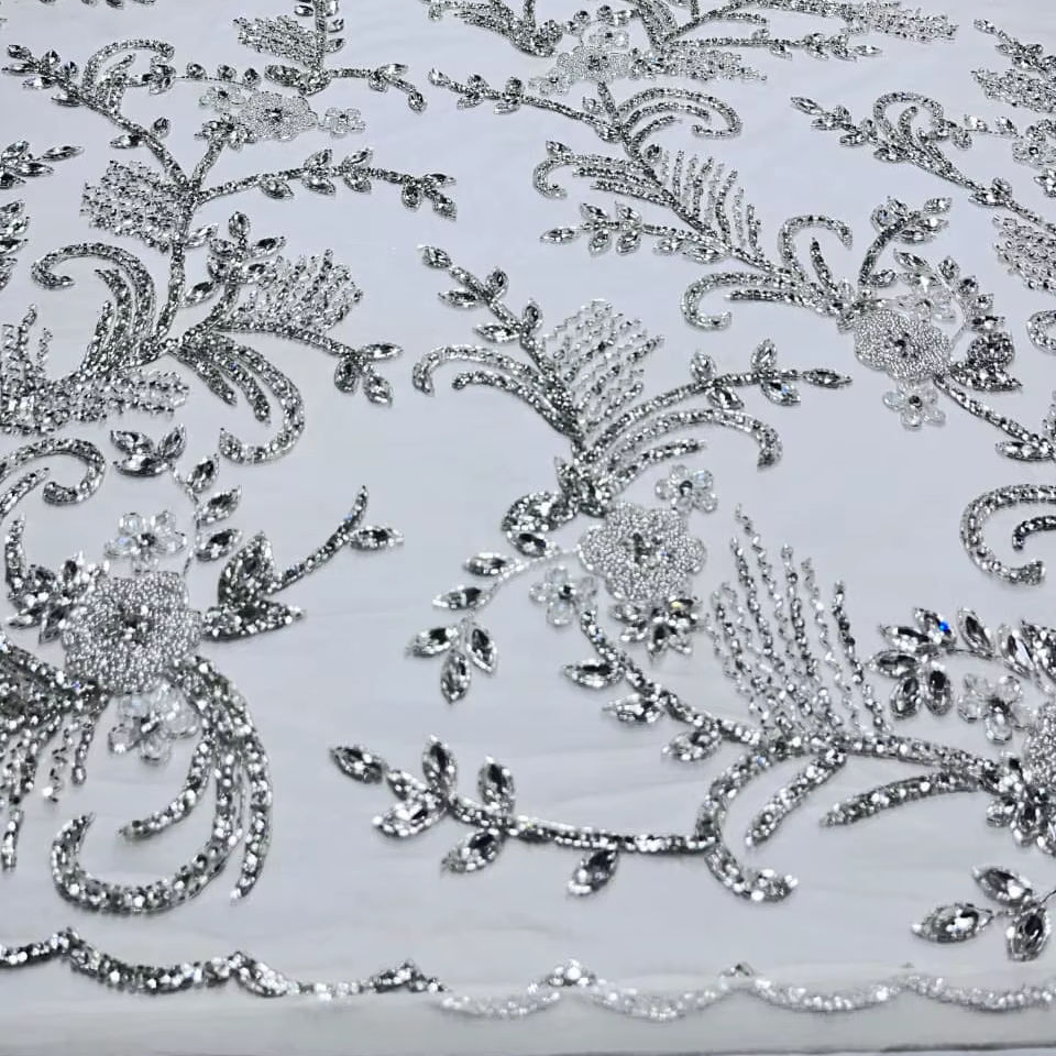 Tissu d'organza de broderie de dentelle perlée de haute qualité fait à la main pour les mariages pour les filles et les femmes