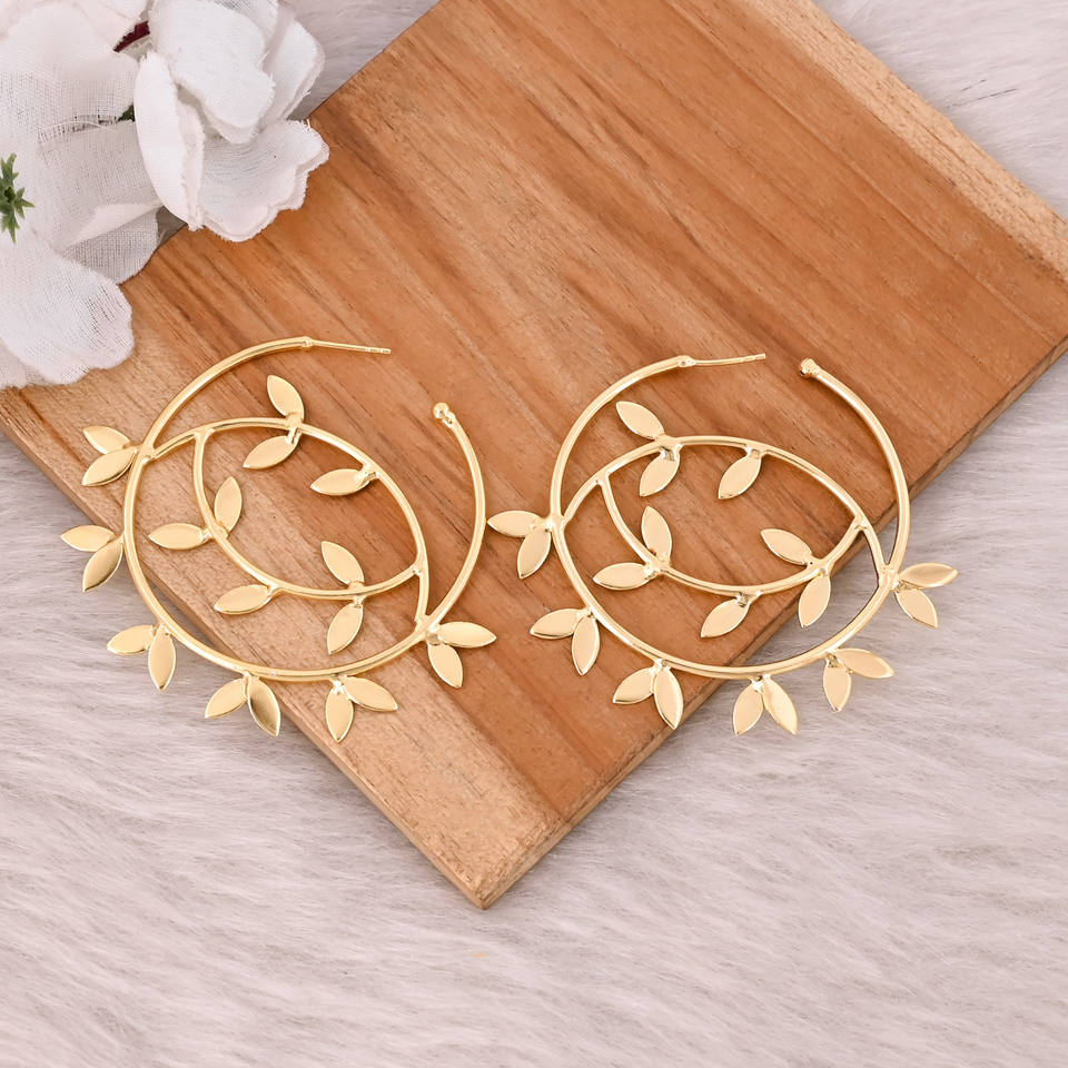 Boucles d'oreilles créoles feuille en laiton plaqué or de haute qualité faites à la main Lot de 25 paires élégantes en gros pour les femmes pour les mariages et les fêtes
