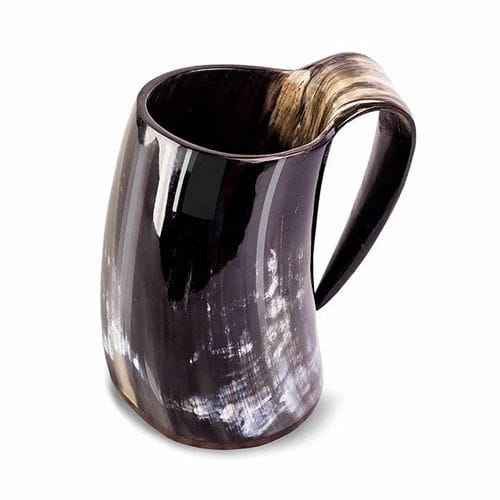 Mug Viking en Corne de Buffle Fait Main de Haute Qualité, Personnalisable, Motif Ange et Animal, Durable pour les Fêtes de Noël