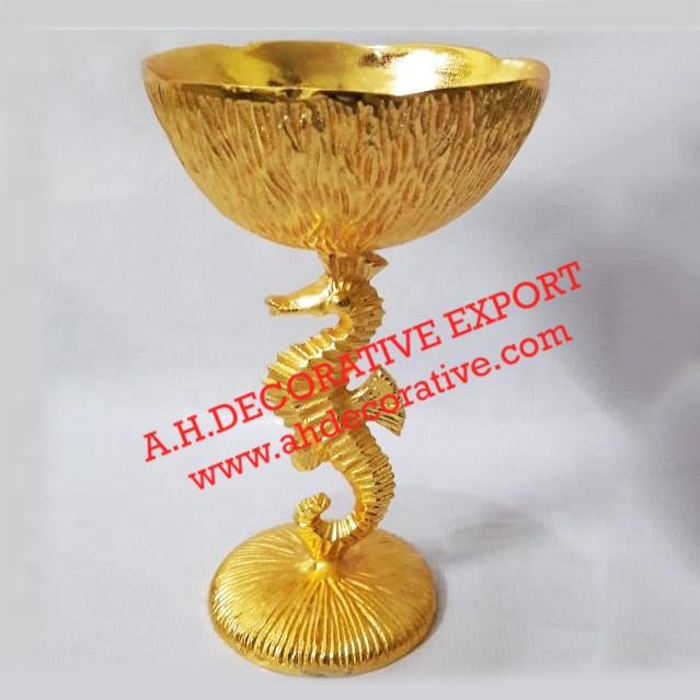Bol à quatre joints en forme de feuille d'aluminium fait à la main de haute qualité avec une pièce de finition dorée au milieu de la poignée