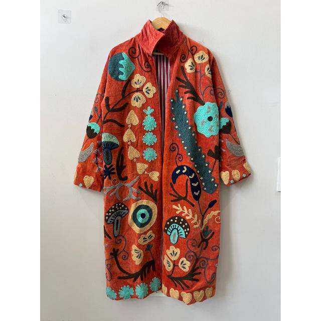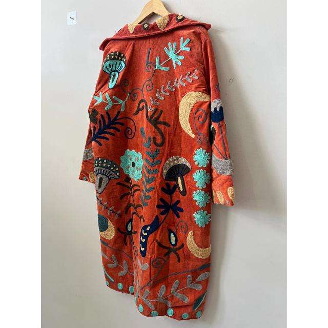 Robe de nuit en velours brodé Suzani faite à la main de haute qualité, élégante, style bohème, motif floral, vêtement de déclaration, cadeau pour elle