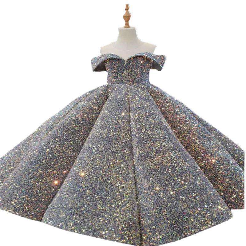 Nom:Robe de bal pour enfants, robe de mariage à fleurs pour filles, robes à paillettes