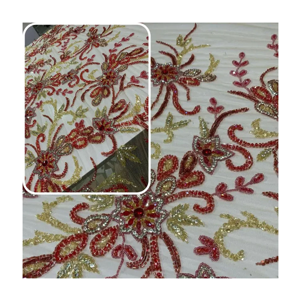 Tissu de luxe en dentelle brodé de haute qualité fait à la main en organza perlé nouveau design de décoration pour robes de mariée