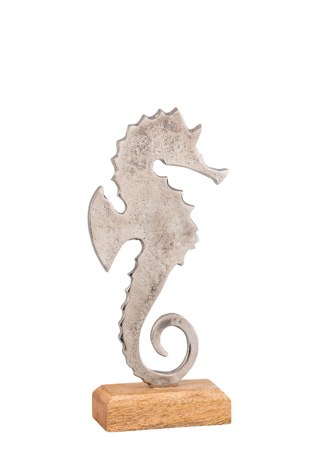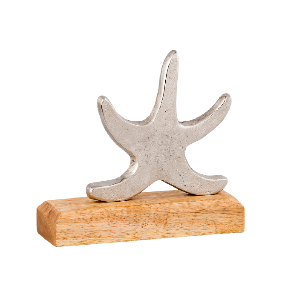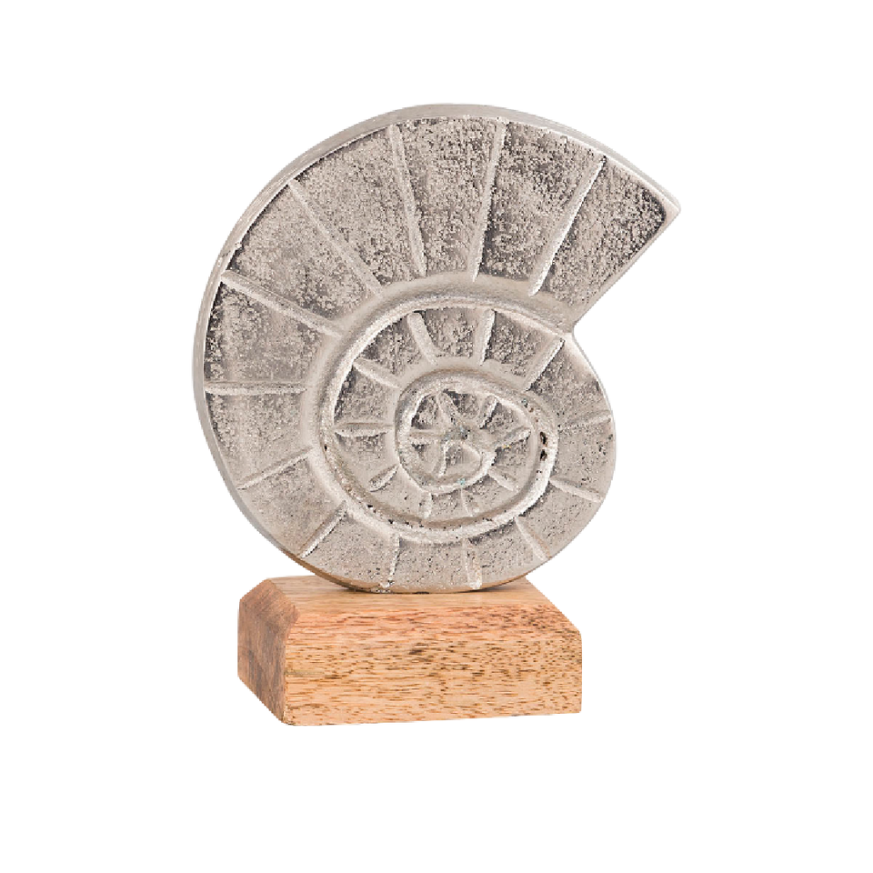 Sculpture de table de café de bureau à domicile moderne faite à la main en métal d'aluminium fini antique argenté avec socle en bois