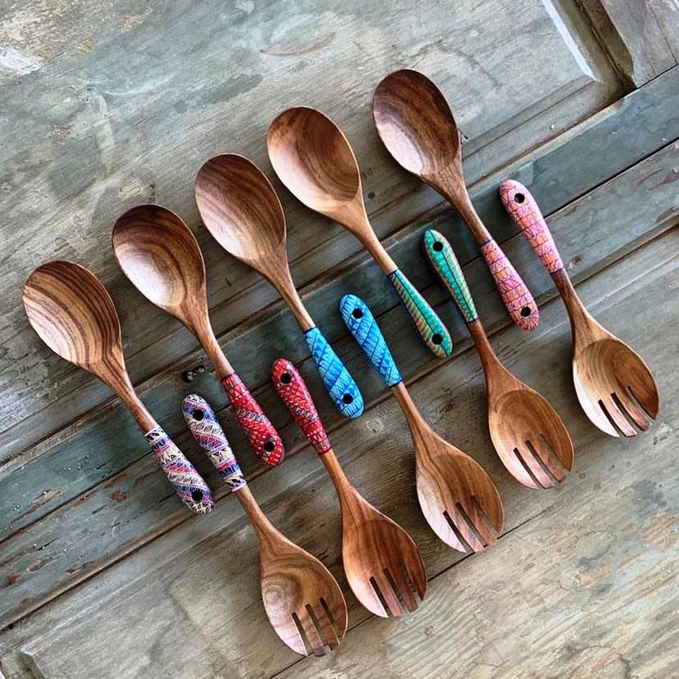 Ensemble de 2 bols à salade en corne et résine faits à la main, fabriqués en Inde, avec service à salade en bois inclus