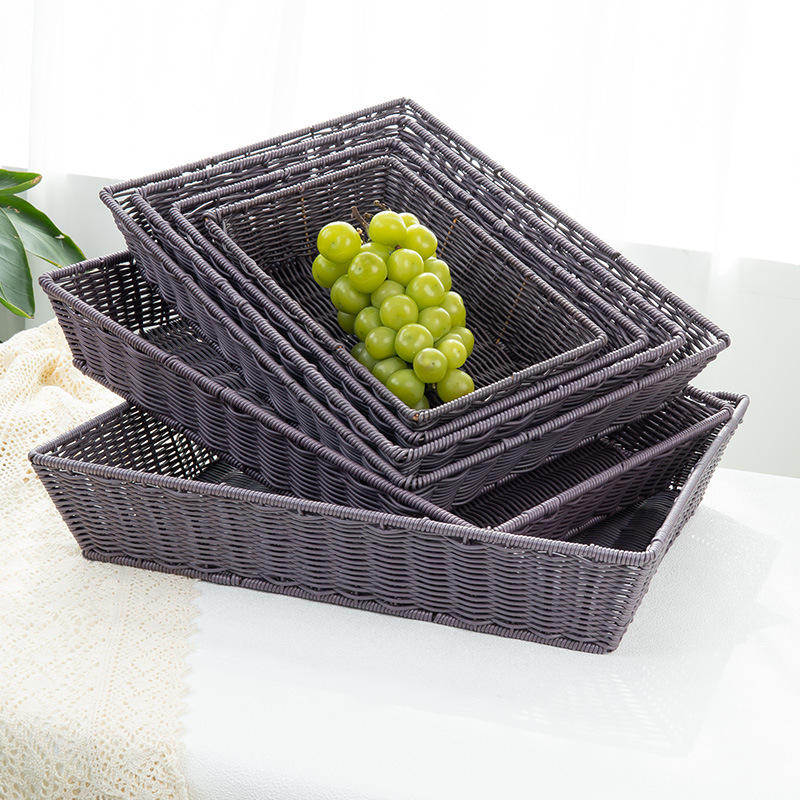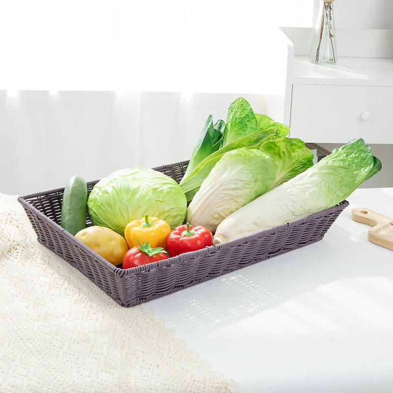 Panier de rangement rectangulaire en rotin tressé imitation fait main, écologique, pour fruits, légumes et usages divers