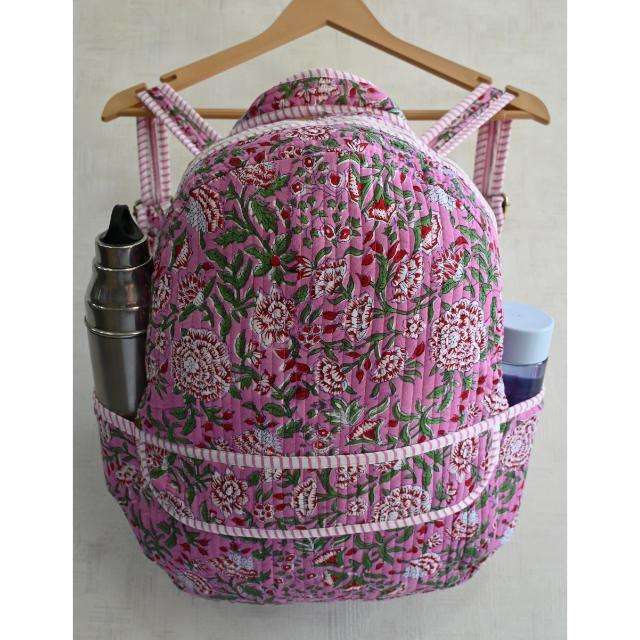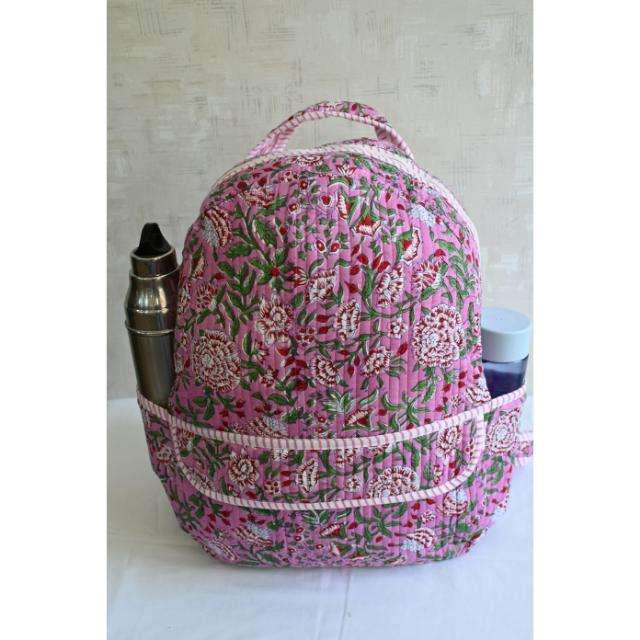 Sac à dos mini en coton matelassé imprimé à la main en Inde, unisexe, bohème, floral, léger, avec fermeture éclair, pour le camping, l'usage quotidien, les voyages