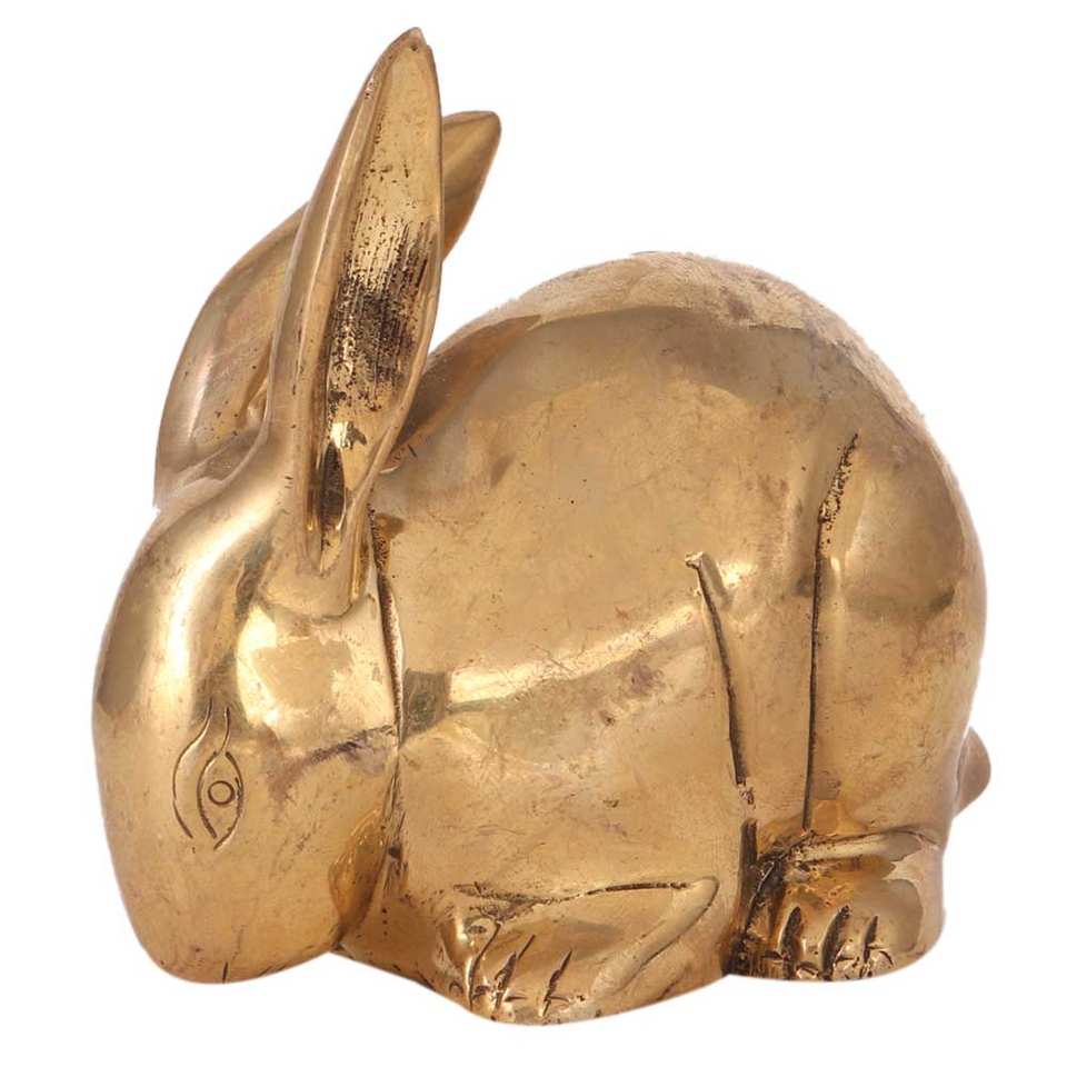 Sculptures de lapin en bronze doré en laiton indien faites à la main, figurine, statue, décoration d'intérieur, articles cadeaux, 9 x 6 cm, SNC-110
