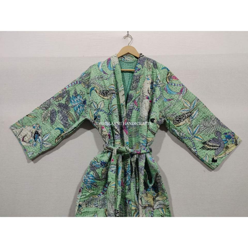 Peignoir en coton indien fait à la main Maxi Kantha Style Floral singe imprimé Kimono robe thermique tissé grande taille en gros Floral