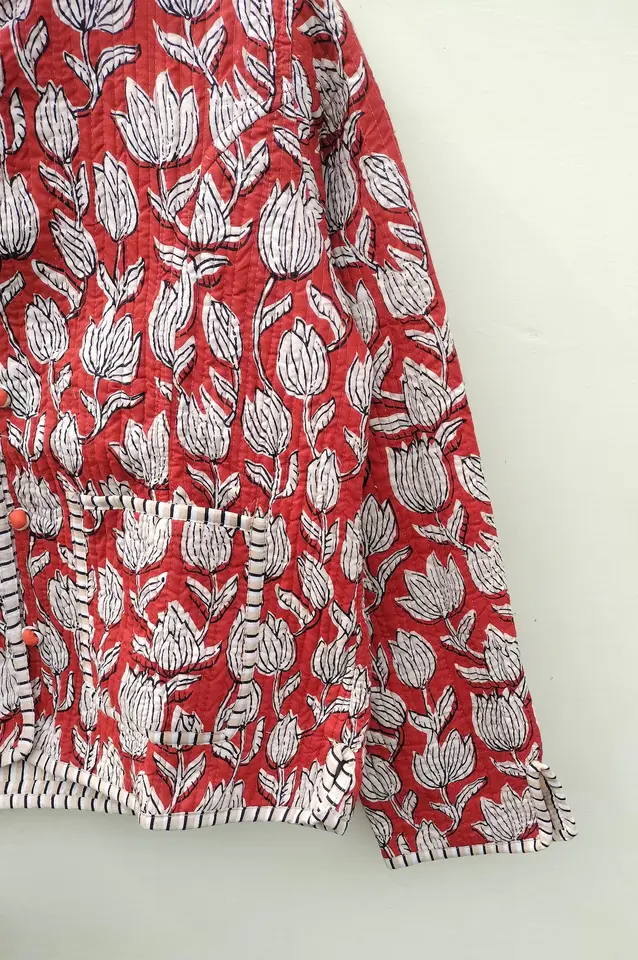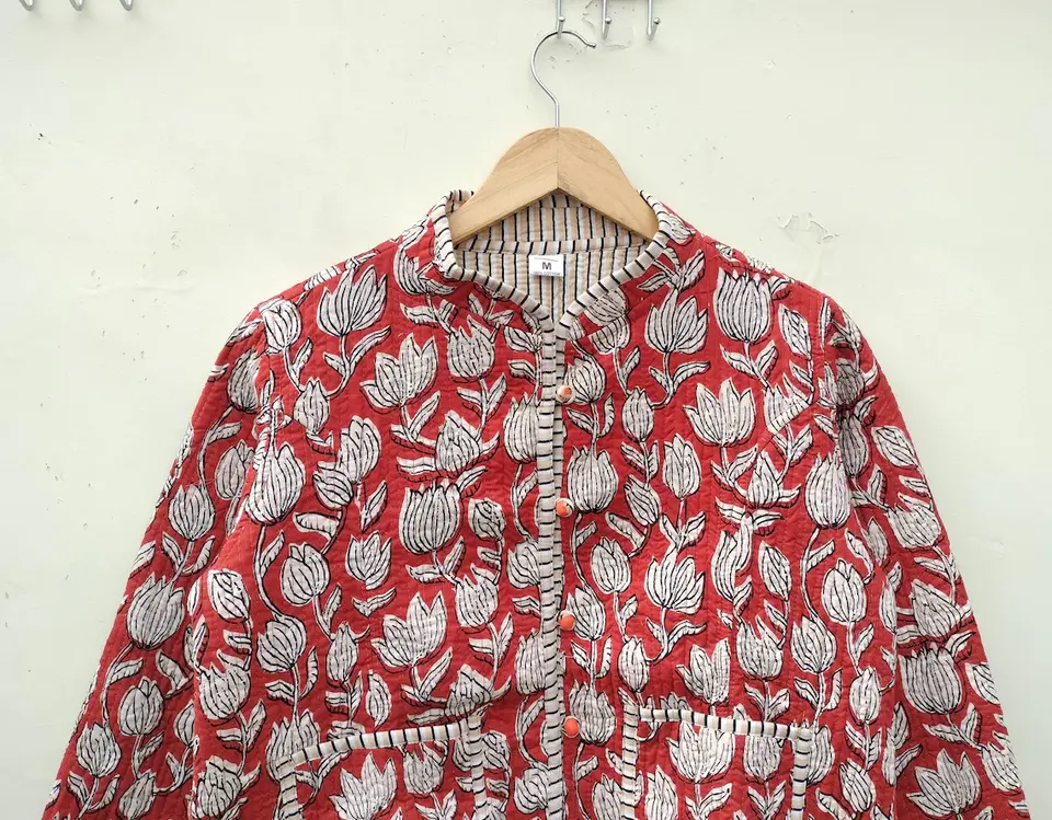 Veste matelassée en coton indien fait à la main avec poches veste d'hiver à fleurs vestes Kimono en coton imprimé à la main cadeau pour elle