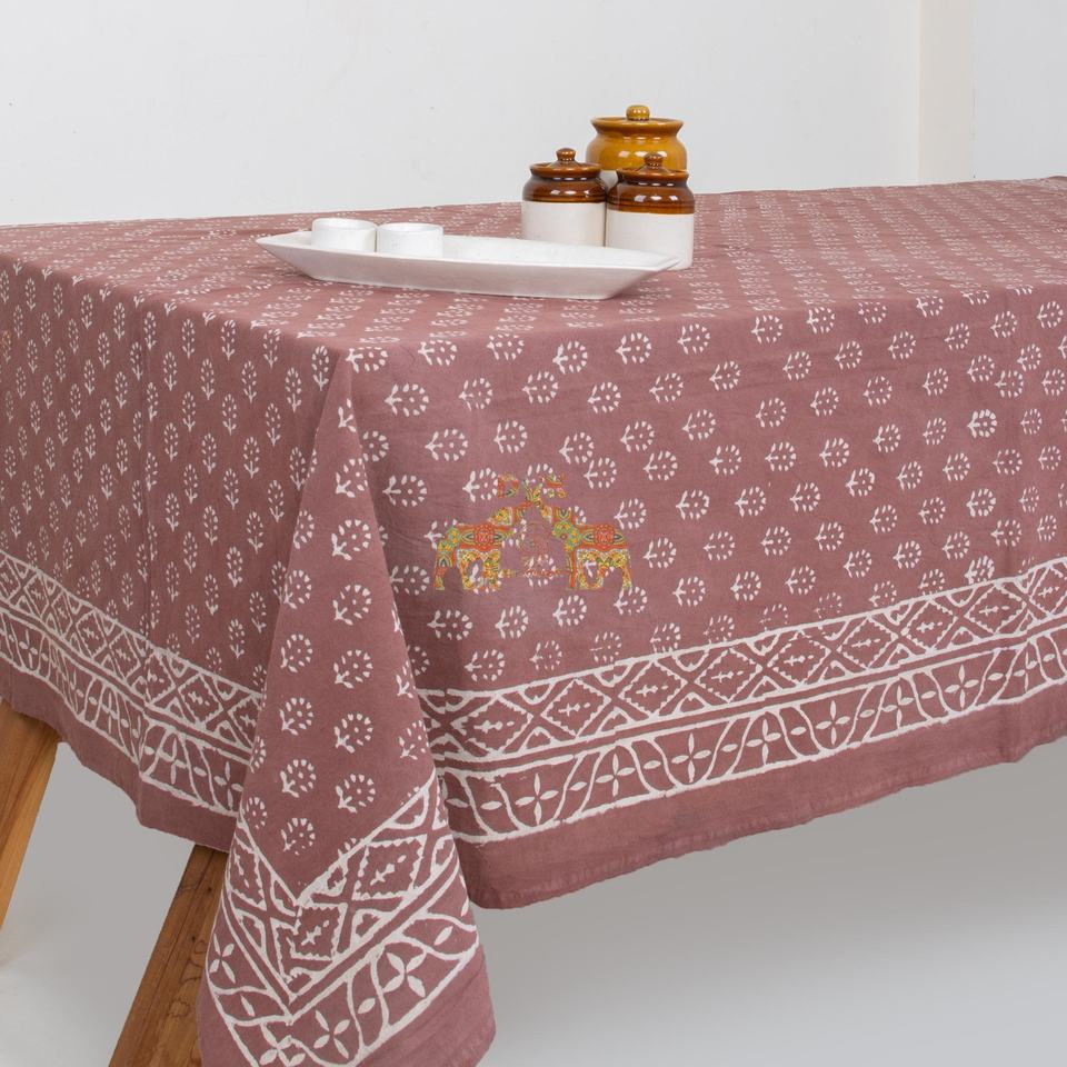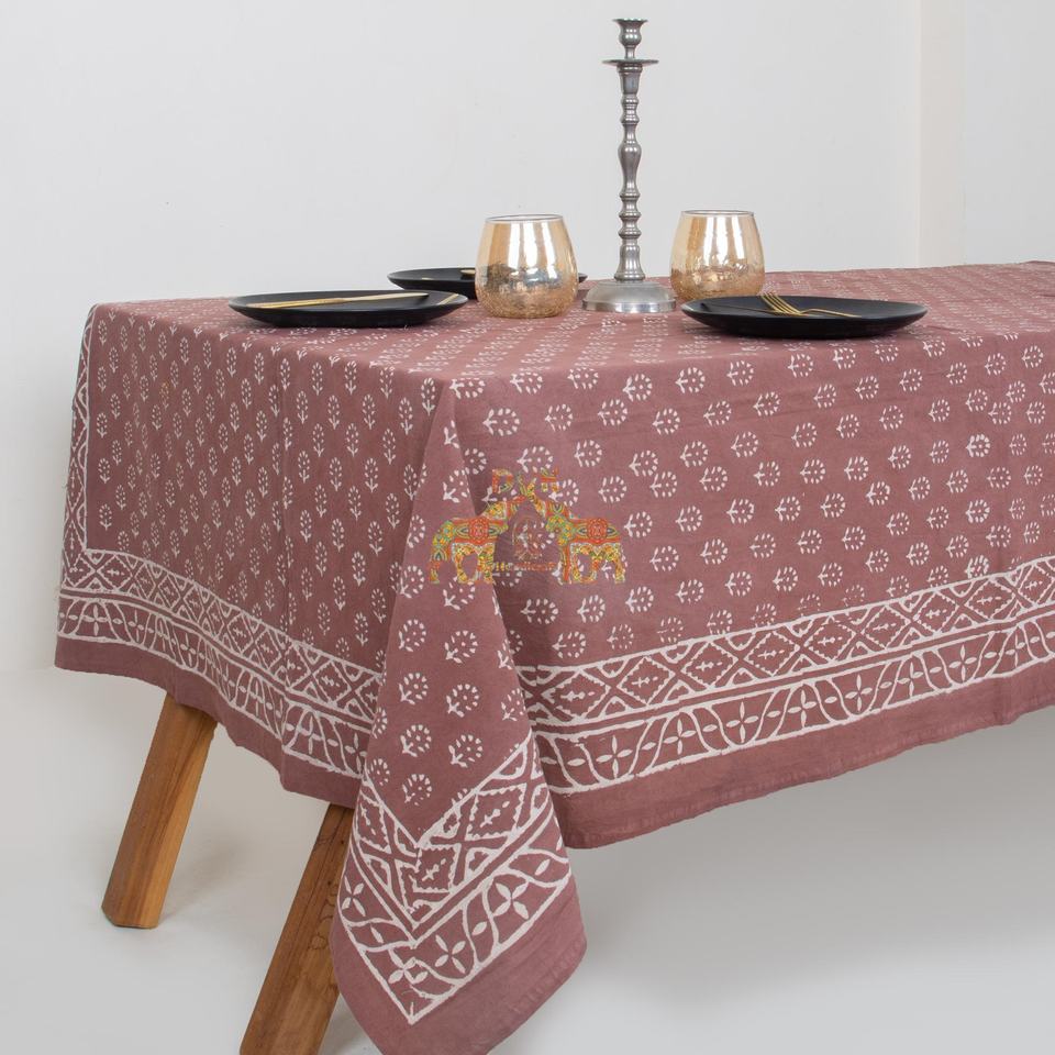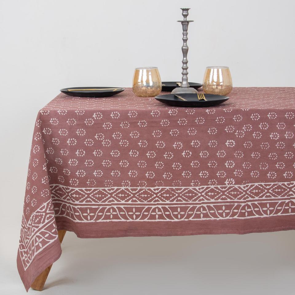 Nappe en coton artisanale indienne à motifs floraux imprimés au tampon Dabu, style rustique campagnard, pour table de salle à manger, usage domestique