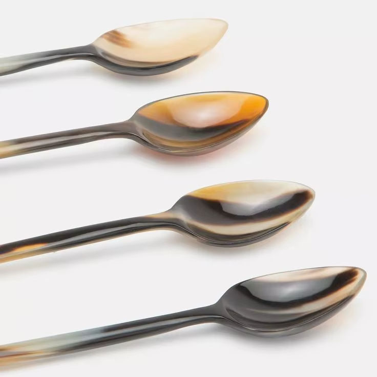 Ensemble de couverts indiens faits à la main réutilisables de 6 pièces en bois miroir avec acier écologique et élégant