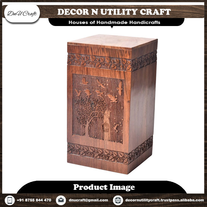 Urne en bois de teck indien faite à la main en palissandre gravure personnalisée Style animal modèle motif pour la décoration de la maison cadeau parfait
