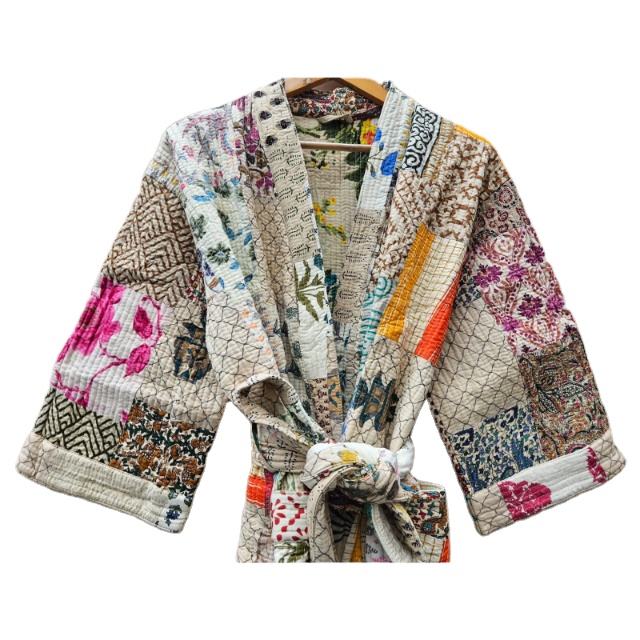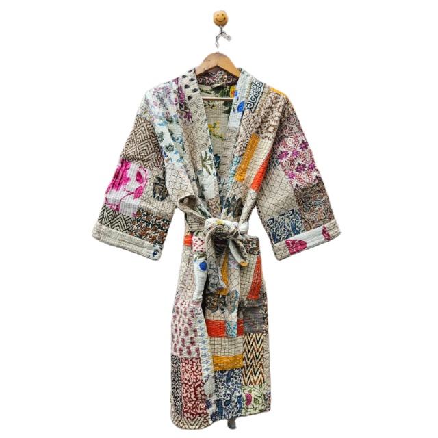 Kimono en coton indien vintage fait à la main Patchwork matelassé vêtements de nuit légers vêtements de détente pour femmes vêtements de maison d'été décontracté