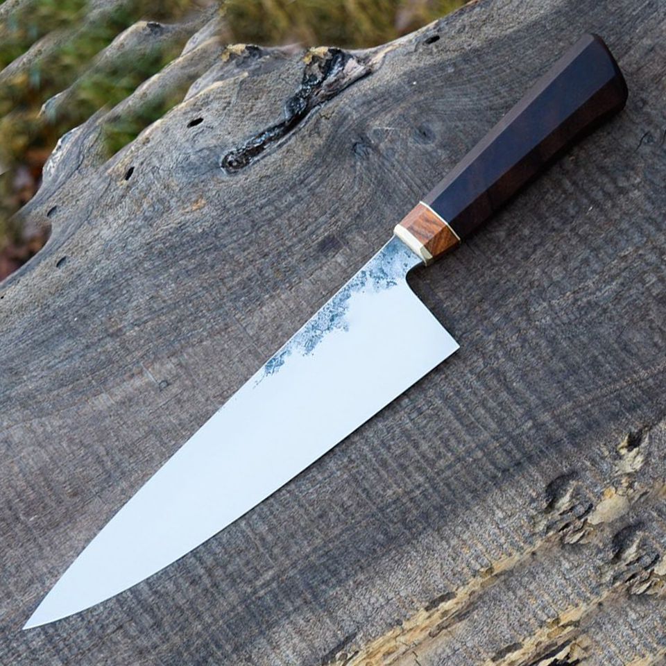 Couteau de Chef Artisanal de Qualité Industrielle, Lame en Acier Damas, Bord Dentelé, Pointe Clip, Design Personnalisable, Service OEM