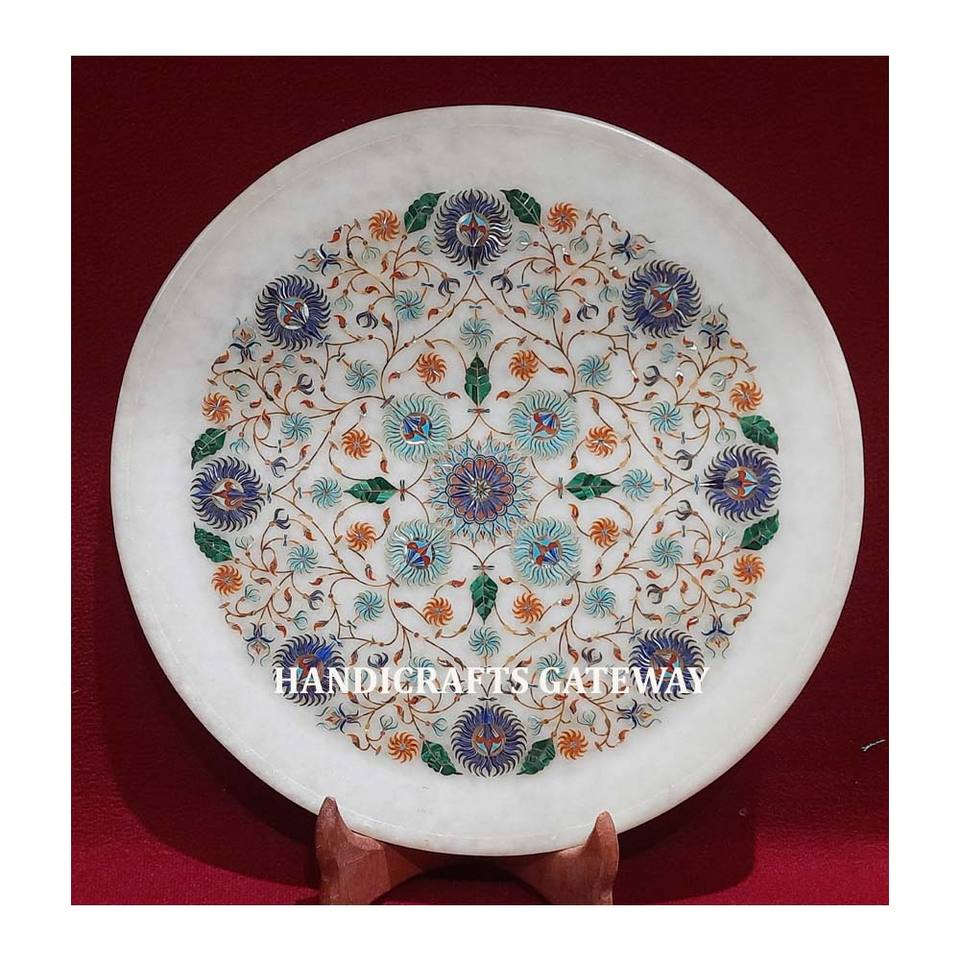Plaque d'incrustation en marbre blanc faite à la main motif de fleur forme ronde meilleure qualité utilisée pour la décoration de la maison et du mariage