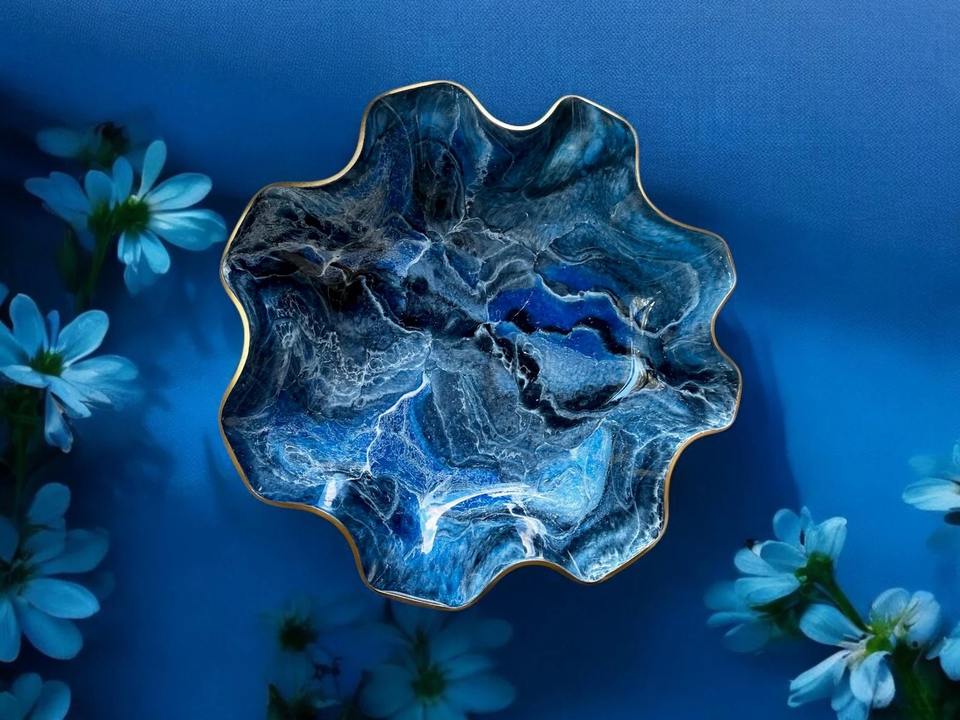 Bol en résine exclusif de design d'intérieur artisanal, modèle unique, bol décoratif pour la décoration de la maison, cadeau de mariage, qualité lisse, faible