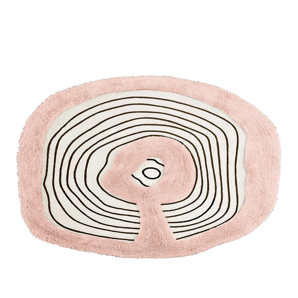 Tapis fait main de forme irrégulière, style crème, design artistique, rond, rose, en soie de lait, à poils longs, doux, pour chambre à coucher, salon