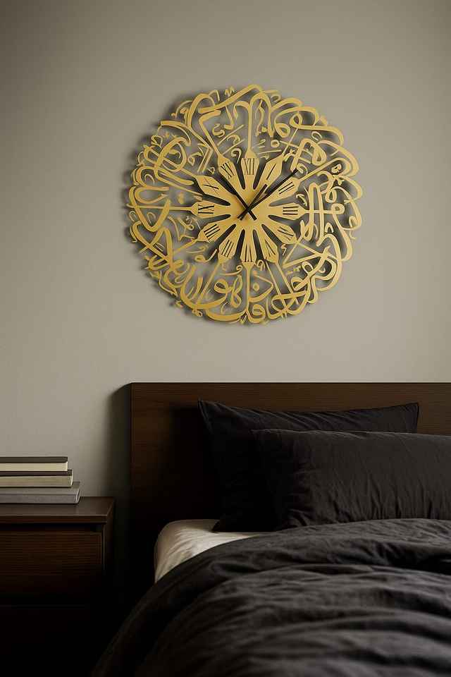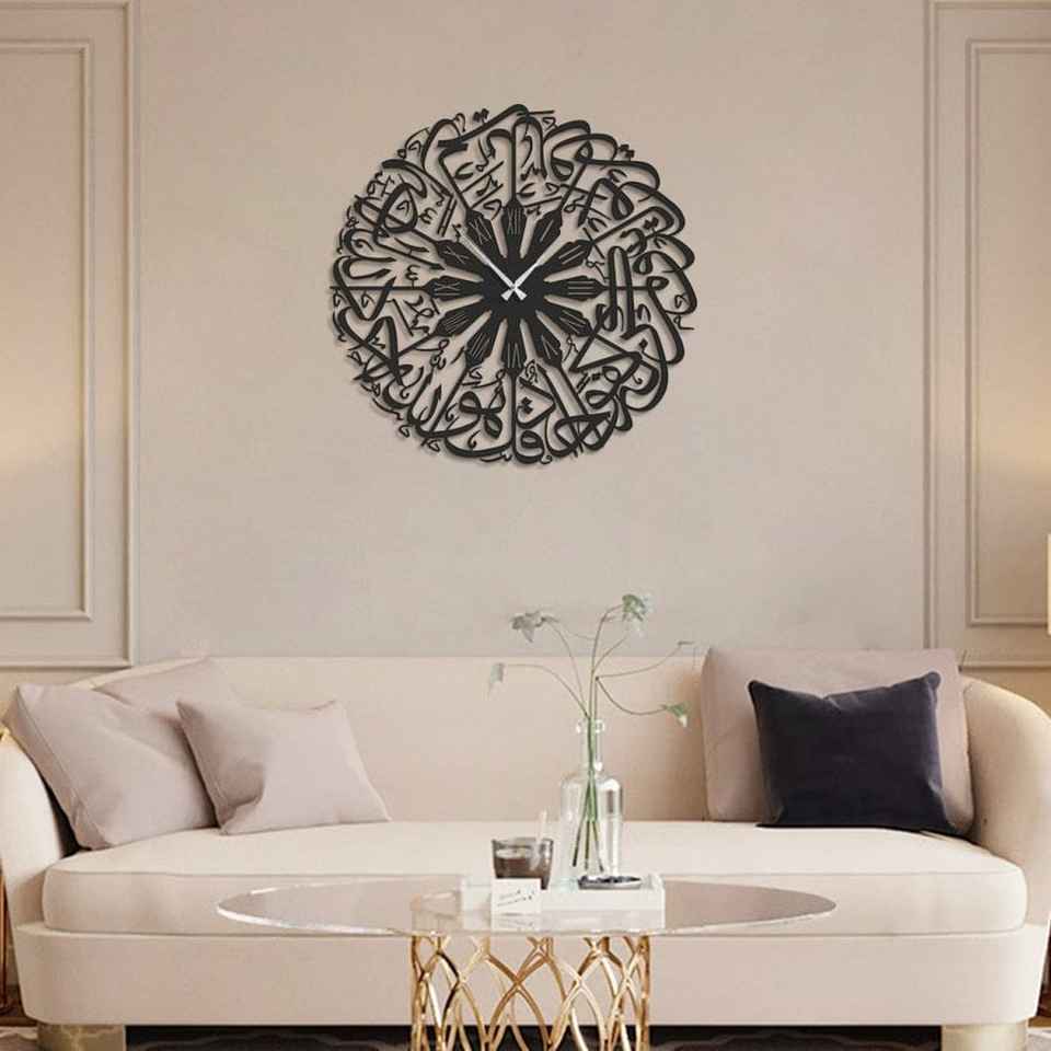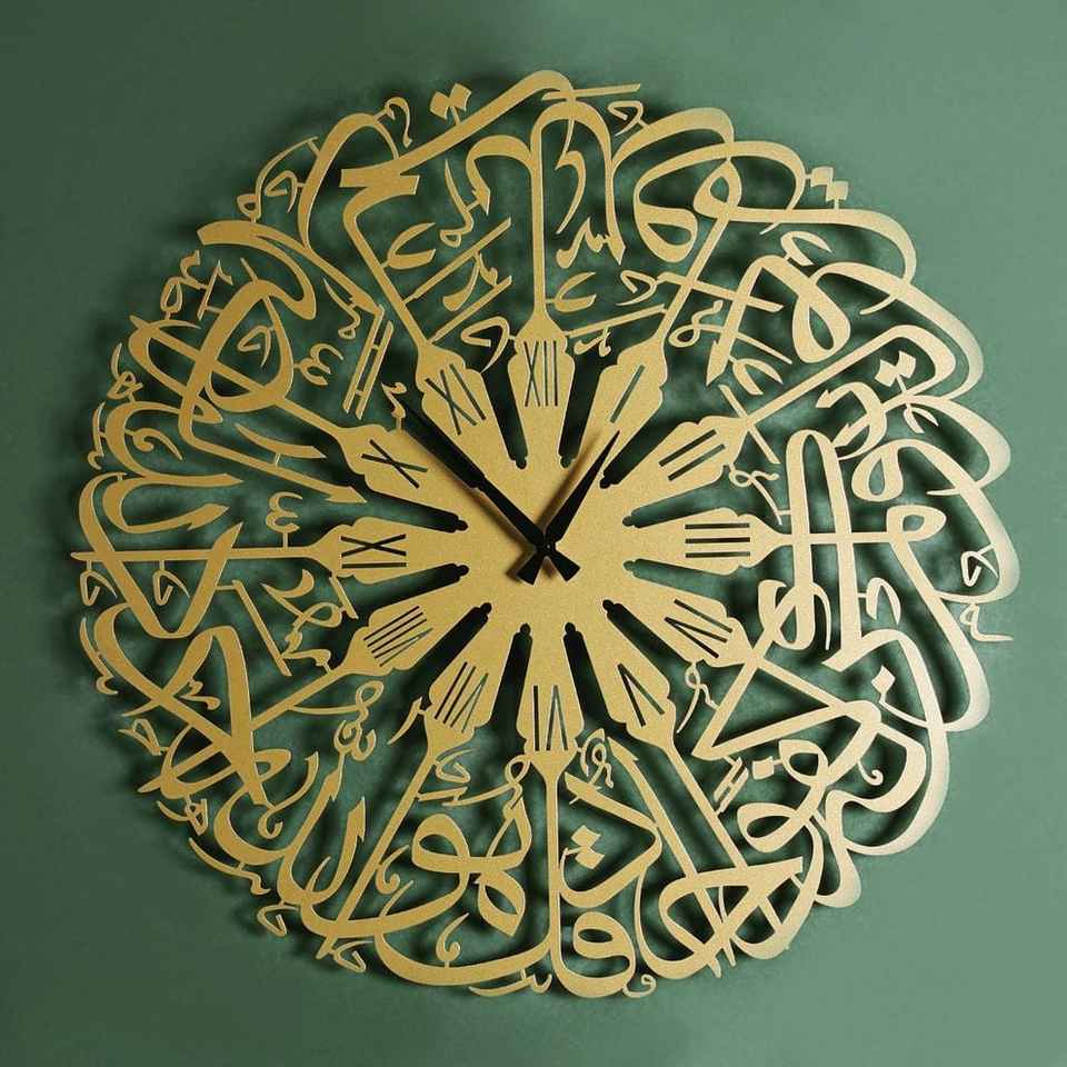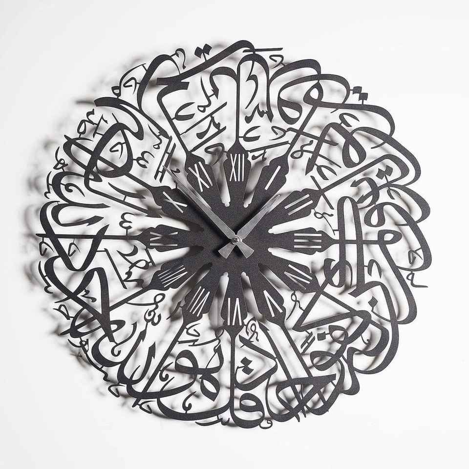 Horloge murale en métal islamique faite à la main avec calligraphie arabe | Conception de verset du Coran découpée au laser en métal | Décoration musulmane pour les EAU et le GCC