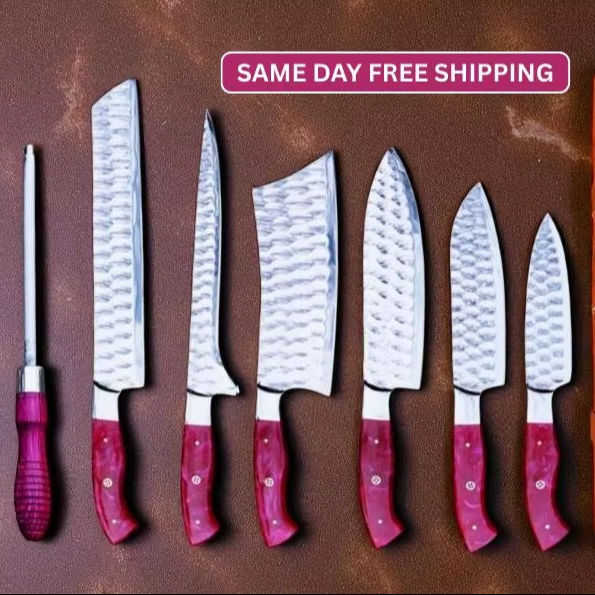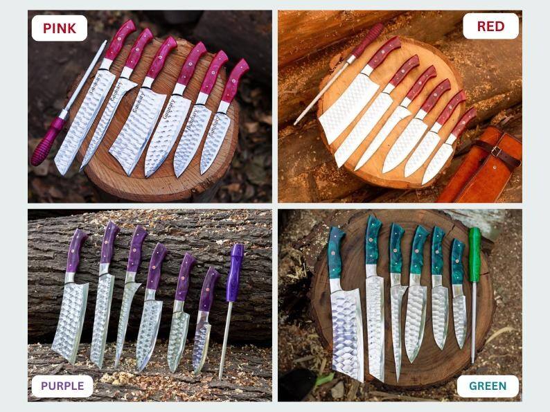 Ensemble de couteaux de chef en acier J2 faits à la main, 6 pièces, couteaux de cuisine et de barbecue avec étui en cuir, cadeau de Noël pour lui, ensemble de cuisine