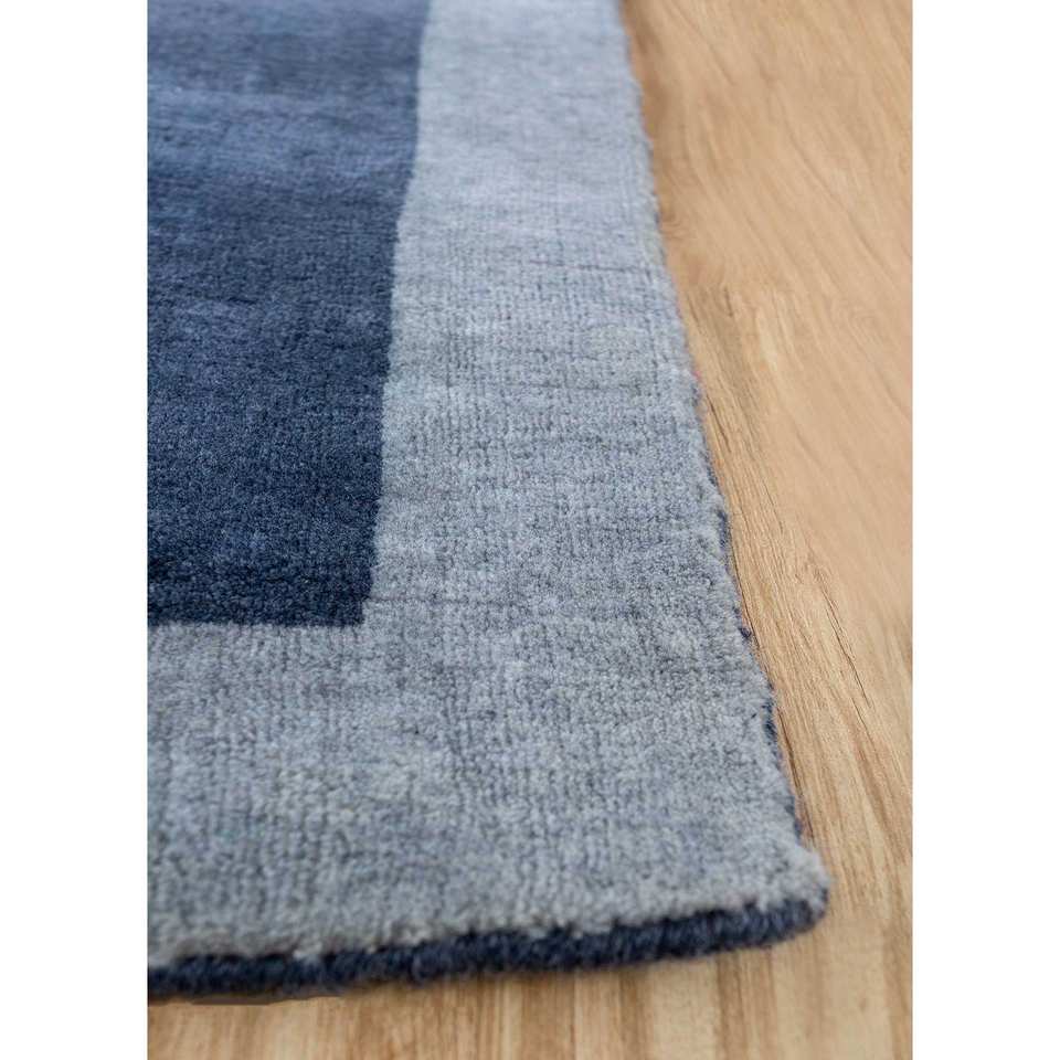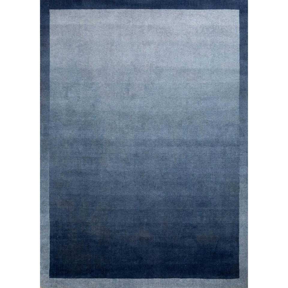 Tapis en laine bleu jean fait main pour salon Hwl-94, tapis rectangulaire uni pour couloir d'adolescents